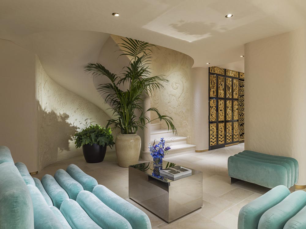 An extension of the dialog between the past and the present – the contrast between the modernity introduced by the Artistic Direction of the house and the heritage of Jeanne Lanvin, the store has been renovated according to the “laconic chic” inspiration of the Belgian decorator Axel Vervoordt, in a traditional Japanese wabi spirit, which could briefly be described as essential simplicity, a return to nature, the use of rare materials such as Marmorino monochrome on the walls, ceilings and stairs and mineral Burgundy stone on the floor.