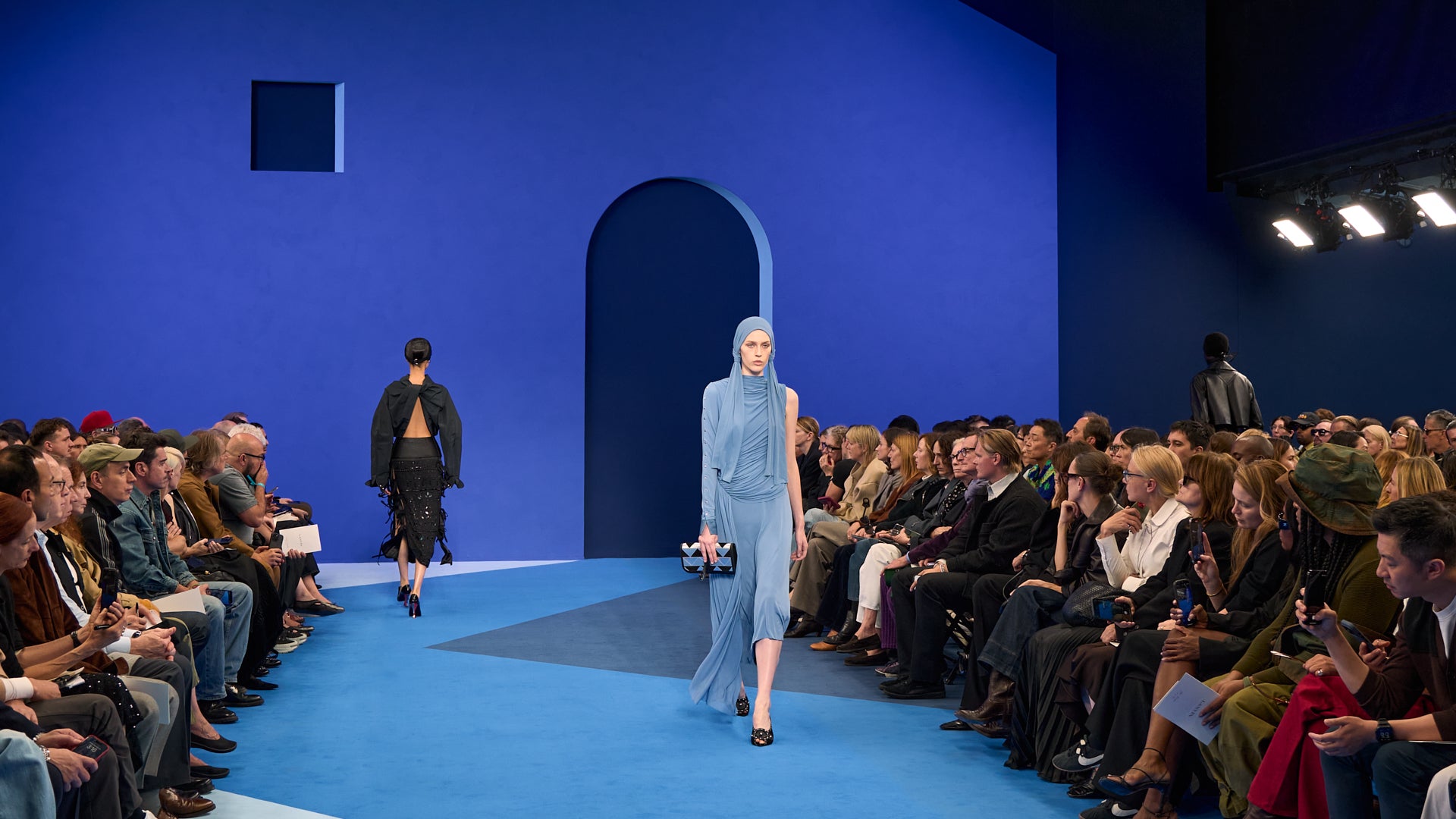 The universe of Lanvin Blue came to life in Lanvin's Summer 2026 show. Artistic Director Peter Copping extrapolated the maison’s signature hue into a full spectrum — at once deep, luminous, and unexpected. Immersed in this chromatic landscape, guests experienced a collection where history and modernity converged in new expressions of elegance.