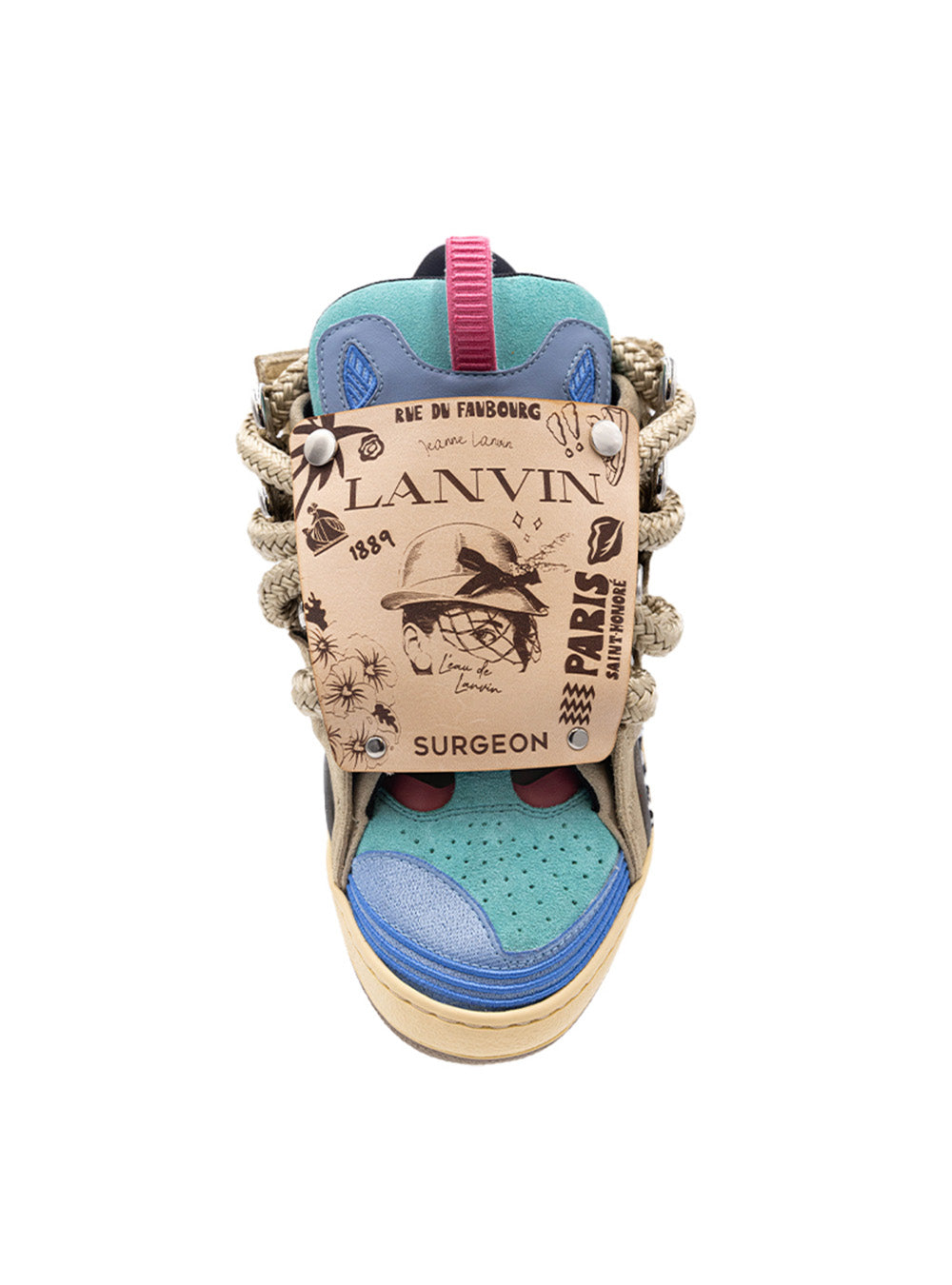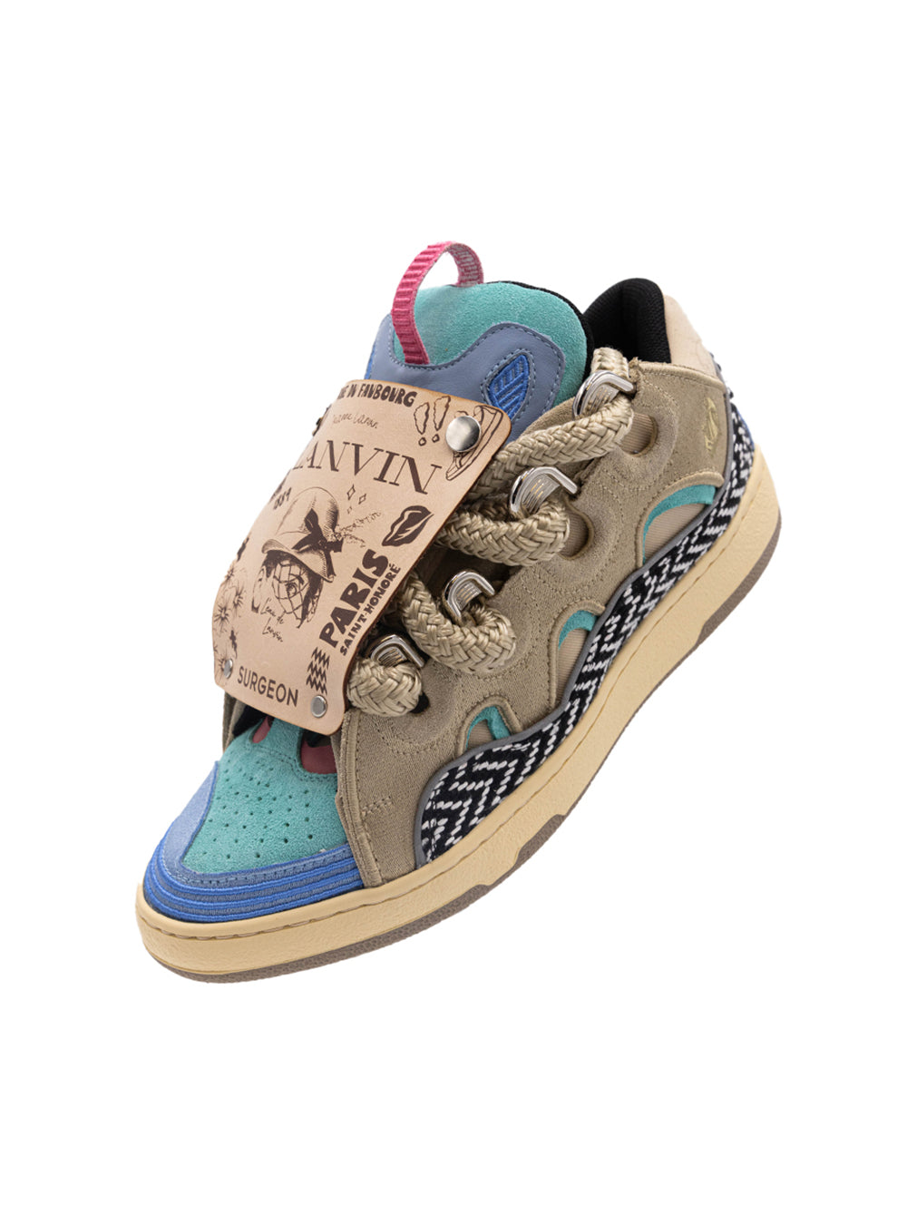 Through a symphony of intricate detailing, the design of the LANVIN Curb Sneaker by Surgeon combines traditional craftsmanship and embroidery with modern processes and techniques in homage to LANVIN’s couture heritage. The color palette pulls inspiration from both Los Angeles and Paris, blending soft hues of blues, tans, and beige, reminiscent of the California coastline where the sand meets the ocean. A pop of pink adds a playful element that rings true to Surgeon ethos bridging sophistication and trend.